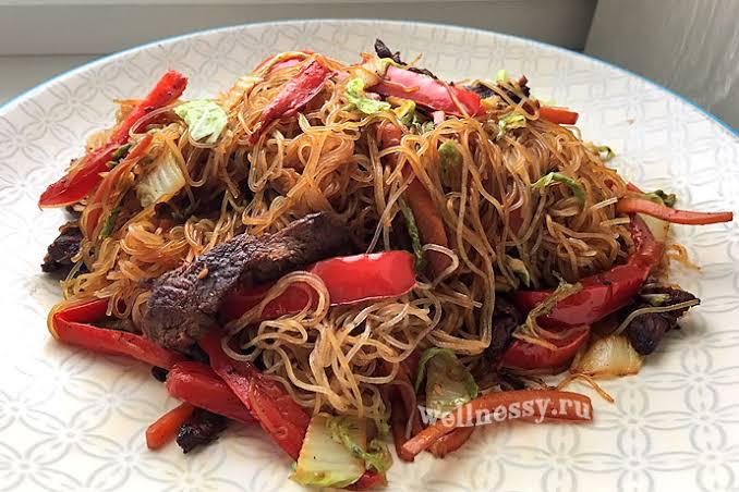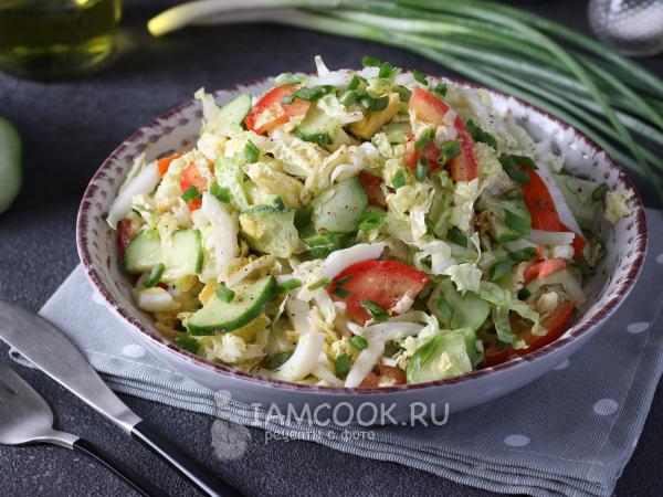 Мясо говядины вареное, помидоры, огурцы, перец зеленый, красный, пекинская капуста, кинза, соевый соус, чеснок