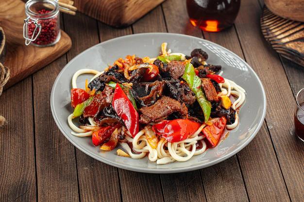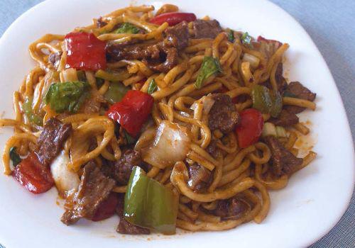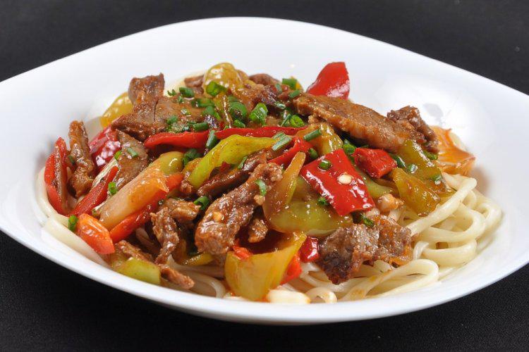 Курица 1.2 кг, приправа, зеленый, красный, Чили перец, лук, картофельные дольки, лапша. На 4-6 чел.